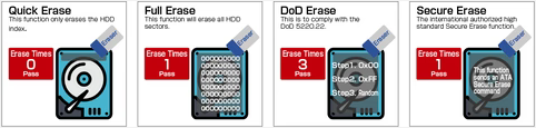 The system supports a range of professional erase modes, including Quick Erase, Full Erase, DoD Erase (DoD 5220.22-M E), and Secure Erase (NIST 800-88). Simply insert your DX115 carrier targets, select the appropriate erase mode for your project requirements, and the system will automatically perform a secure, compliant wipe of your CRU hard drives.